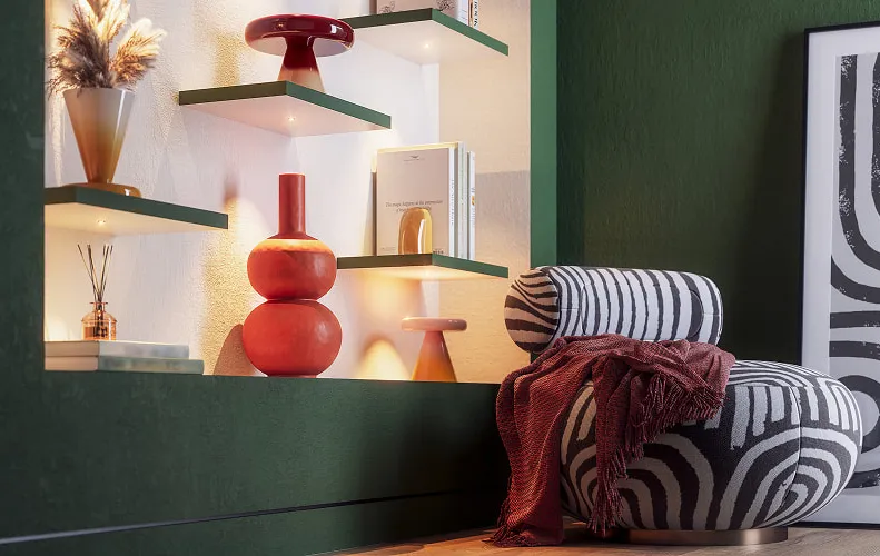 Миниатюрный размер и узкий световой луч позволяют привлечь внимание к важным деталям, не нарушая стиль помещения.