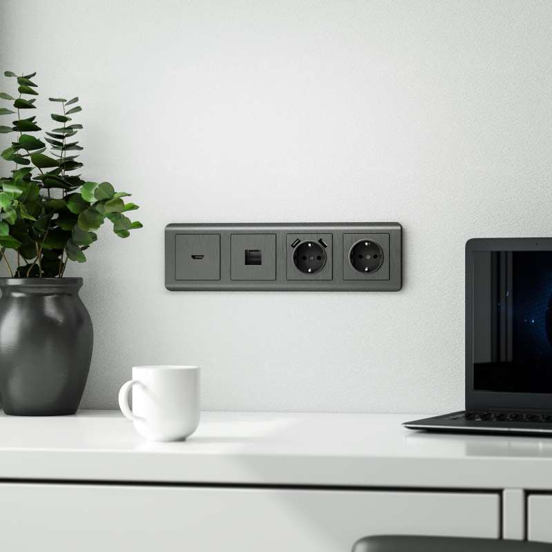 Накладка для розетки с USB WERKEL WL04-USB-CP / W1179504 графит рифленый