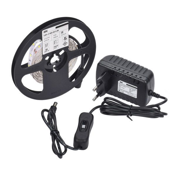 Комплект светодиодной ленты Белый LSR1-2-060-20-1-05-S1 "Сделай сам" (лента LED 5м LSR-2835W60-4,8-IP20-12В + драйвер + выключатель) IEK