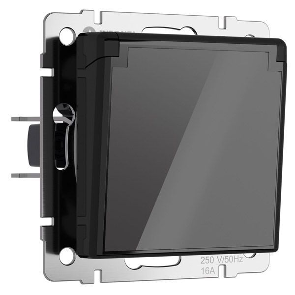 Штепсельная розетка встраиваемая WERKEL 16A 250V W1171248 с/з, шторками и защитной крышкой черный акрил