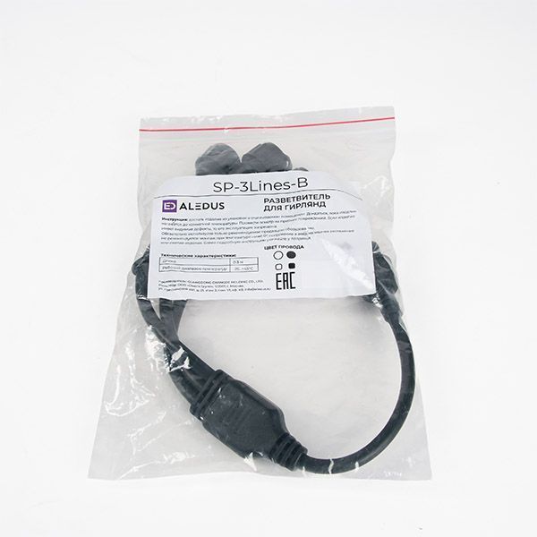 Разветвитель для гирлянд ALEDUS SP-3Lines-B 1-3, 2Pin, черный
