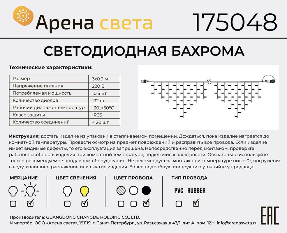 гирлянда БАХРОМА 10.5W Белый теплый Арена Света, черный провод каучук, с мерцанием 230V IP66