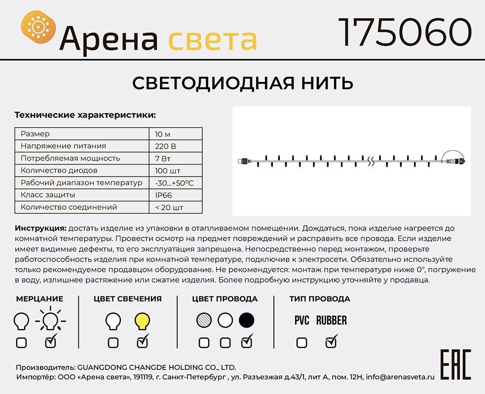 Тип гирлянды светодиодная нить