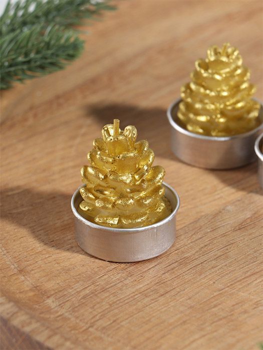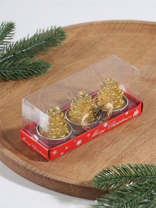 Свеча декоративная «Шишка золотая», 4х6 см, 3 шт.