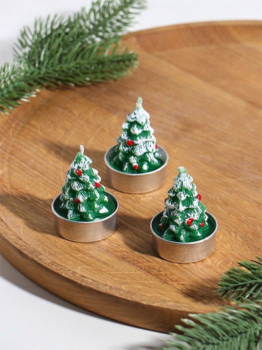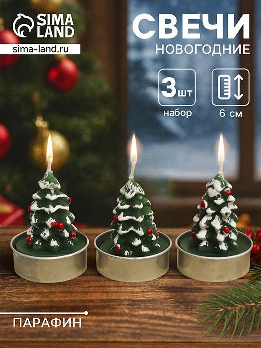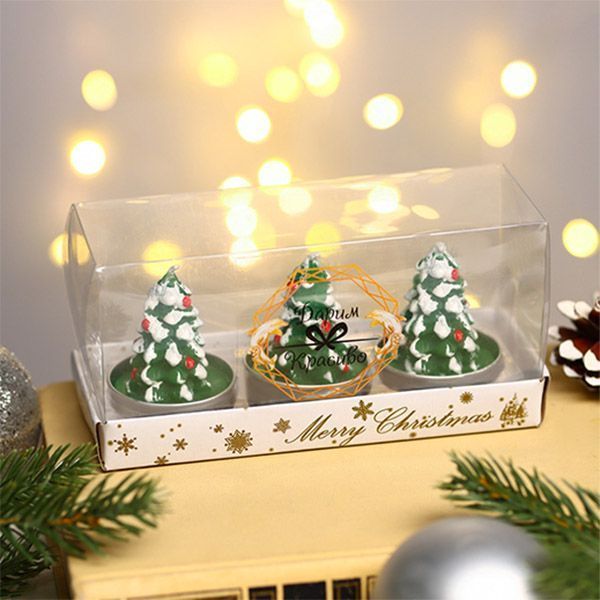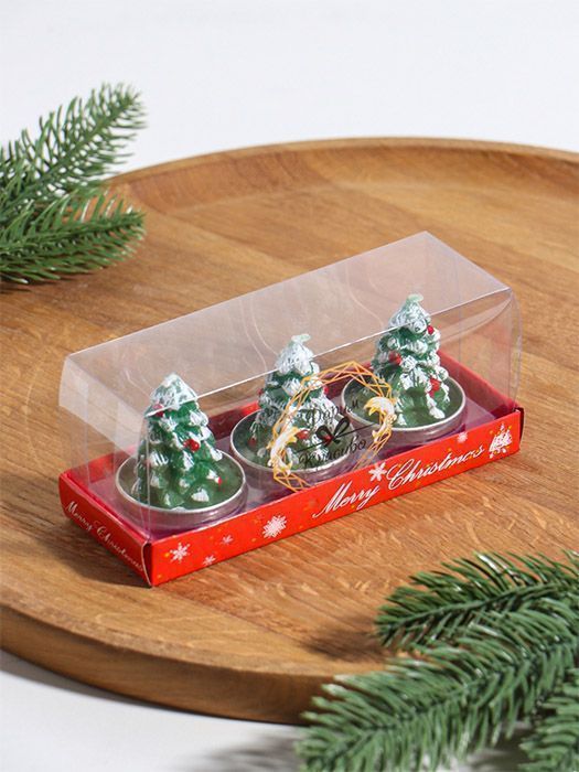 Свеча декоративная «Ёлка зелёная», 4х6 см, 3 шт.