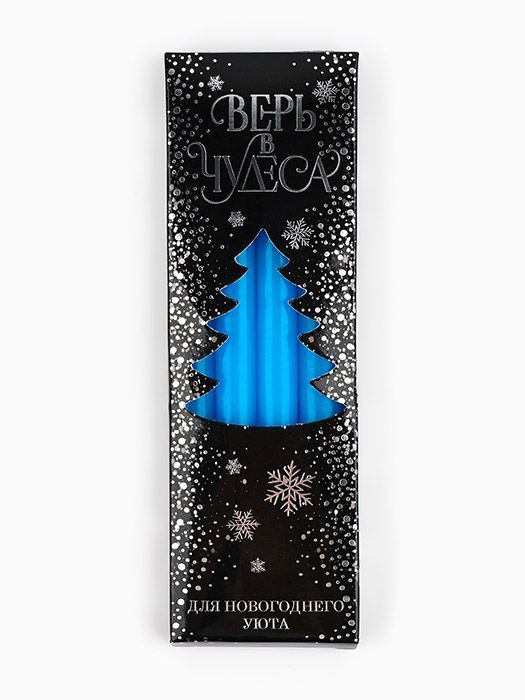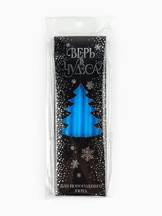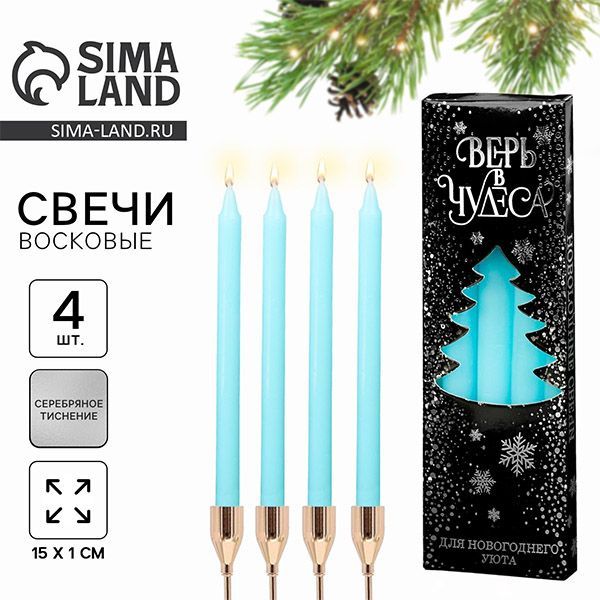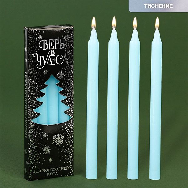 Свеча декоративная «Верь в чудеса» голубые, 15х1х1 см 4 шт