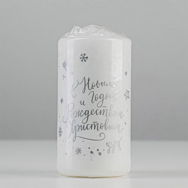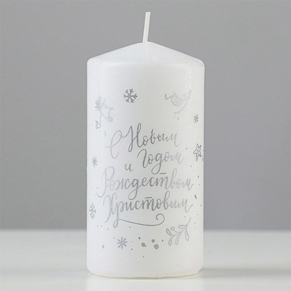 Свеча декоративная «С Новым годом и Рождеством!», 5х10 см, белая с серебром