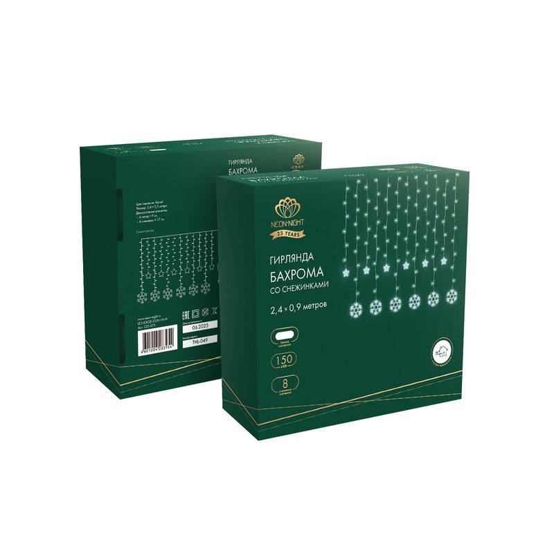 Гирлянда Бахрома со снежинками – это красивый и элегантный элемент декора, который создаст праздничную атмосферу и принесет в ваш дом зимнее волшебство.