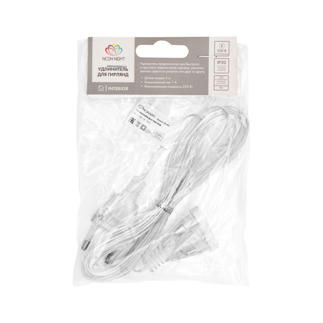 Шнур-удлинитель 315-424 для домашних гирлянд 3 м прозрачный ПВХ