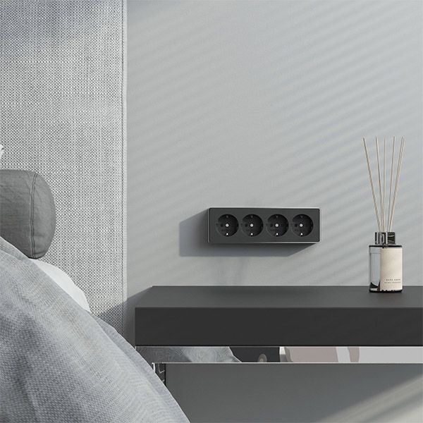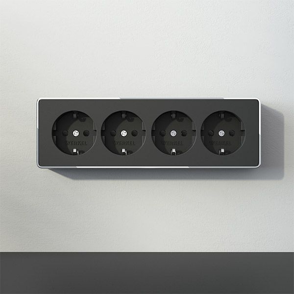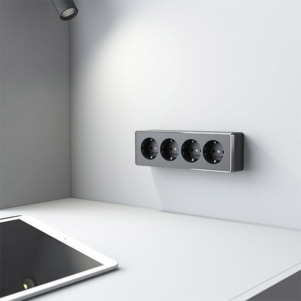 Штепсельная розетка накладная четверная WERKEL GALLANT 16A 250V W5072258 с/з и шторками черный/хром