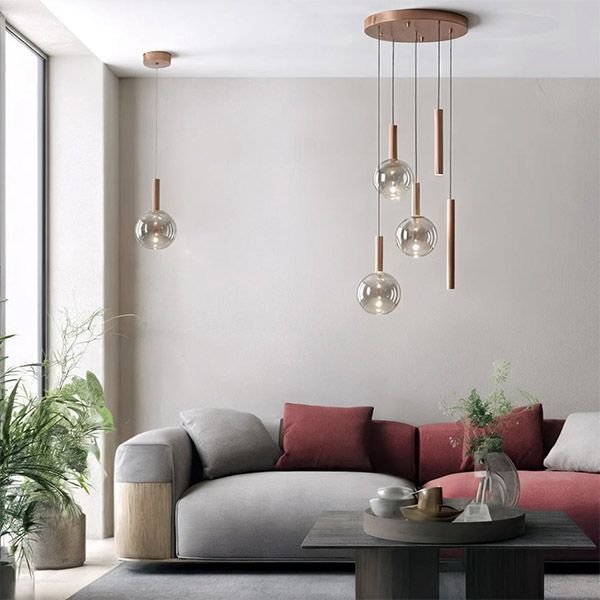 Романтичные светильники с шарообразными плафонами из дымчатого стекла, напоминающими выдувание мыльных пузырей. Полупрозрачное стекло дымчатого серого оттенка и элементы с медным покрытием придают интерьеру стиль и благородство, а тёплое свечение создаёт атмосферу уюта.