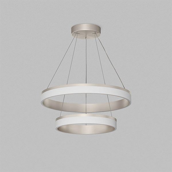 RING — это коллекция подвесных светильников, где геометрическая форма кольца становится центральным элементом дизайна. Лаконичная конструкция в текстуре «сатинированный никель» и мягкий рассеянный свет создают гармоничную атмосферу в любом пространстве.