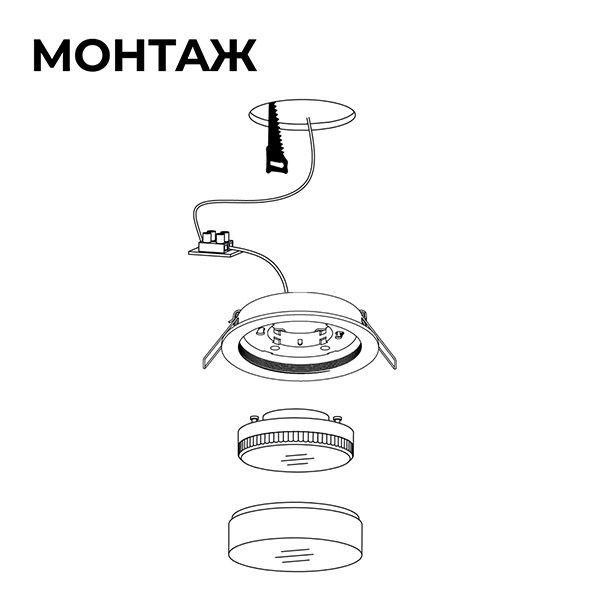 Светильник предназначен под светодиодную лампу GX53 с максимальной мощностью 15 Вт (в комплект не входит), что позволяет выбрать желаемую мощность и цветовую температуру в зависимости от задачи освещения.