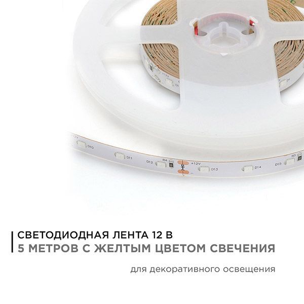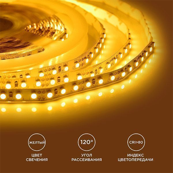 Светодиодная лента Желтый 3528 12V 4.8W/m 60Led/метр 00-33 Стандарт 8мм