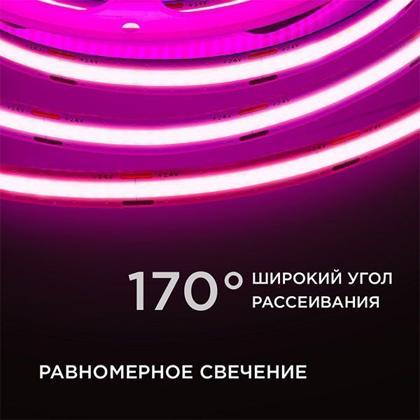 Светодиодная лента Розовый COB 24V 11W/m 352Led/метр 00-356 PRO 10мм IP20