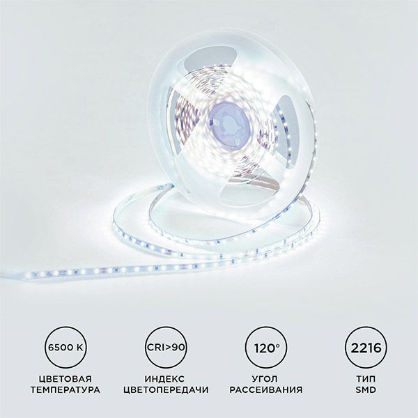 Светодиодная лента Белый 2216 24V 5.4W/m 120Led/метр R00-380 4мм
