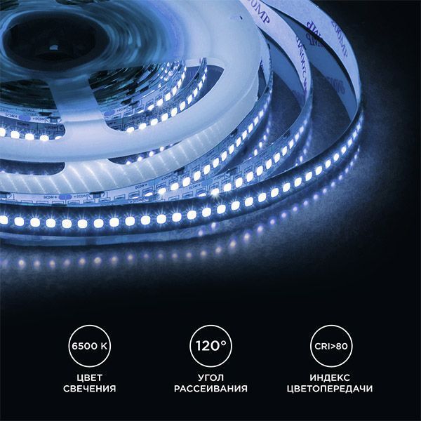Светодиодная лента из линейки PRO с артикулом 00-302 работает от постоянного тока с напряжением 24В. Благодаря светодиодам smd 2835 излучающим световой поток равный 2700 Лм/м лента является отличным решением для изготовления светодиодных светильников в алюминиевом профиле. Благодаря высокой яркости с помощью таких светильников можно организовать основное освещение не только в жилых помещения, медицинских и образовательных учреждениях, но и торговых залах с большой высотой потолков. По сравнению с лампами накаливания светодиодная лента эквивалентна лампам мощностью 270 Вт. Данная модель светодиодной ленты обладает холодным белым цветом свечения с цветовой температурой 6500 К. При выборе светодиодной ленты важно учитывать такой параметр, как потребляемая мощность, чтобы правильно подобрать блок питания. У данной модели этот показатель равен 26 Вт на один метр. Степень защиты этого изделия соответствует стандарту IP20, что подразумевает использование только в сухих и проветриваемых помещениях. Отрезать светодиодную ленту можно в специально отмеченных местах, которые располагаются через каждые 25 мм. Компактные размеры светодиодной ленты с шириной 10 мм и основанием из гибкой, двухслойной, медной подложки дают огромное преимущество при создании любых дизайнерских фантазий. Для управления лентой используйте диммер для монохромной светодиодной ленты (приобретается дополнительно). С помощью него можно включать или выключать светодиодную ленту, отрегулировать ее яркость, а также использовать различные динамические режимы и настроить скорость их работы.