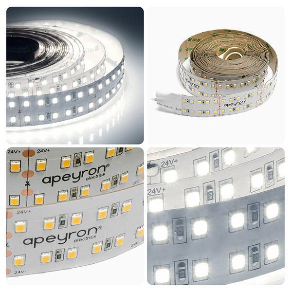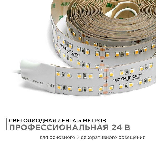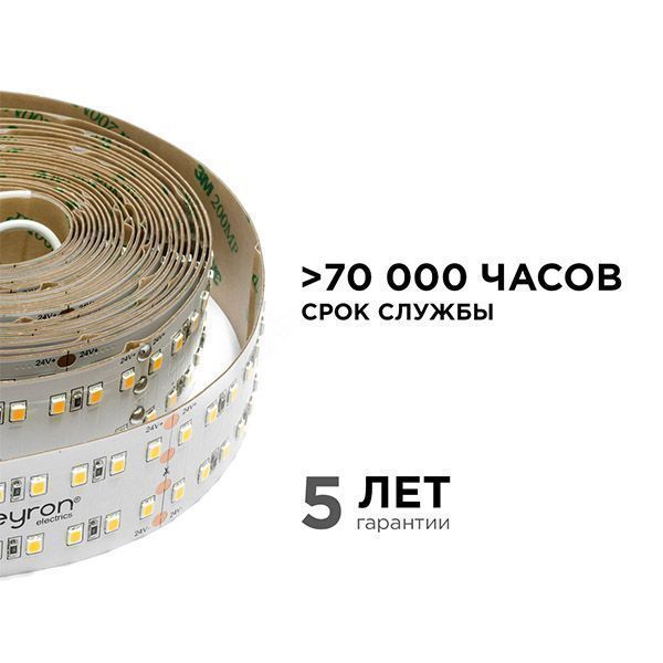 Светодиодная лента из линейки PRO с артикулом 00-315 работает от постоянного тока с напряжением 24В. Благодаря светодиодам smd2835 излучающим световой поток равный 3800 Лм/м лента является отличным решением для изготовления светодиодных светильников в алюминиевом профиле. Благодаря высокой яркости с помощью таких светильников можно организовать основное освещение не только в жилых помещения, медицинских и образовательных учреждениях, но и торговых залах с большой высотой потолков. По сравнению с лампами накаливания светодиодная лента эквивалентна лампам мощностью 380 Вт. Данная модель светодиодной ленты обладает дневным белым цветом свечения с цветовой температурой 4000 К. При выборе светодиодной ленты важно учитывать такой параметр, как потребляемая мощность, чтобы правильно подобрать блок питания. У данной модели этот показатель равен 38 Вт на один метр. Степень защиты этого изделия соответствует стандарту IP20, что подразумевает использование только в сухих и проветриваемых помещениях. Отрезать светодиодную ленту можно в специально отмеченных местах, которые располагаются через каждые 50 мм. Компактные размеры светодиодной ленты с шириной 20 мм и основанием из гибкой, двухслойной, медной подложки дают огромное преимущество при создании любых дизайнерских фантазий. Для управления лентой используйте диммер для монохромной светодиодной ленты (приобретается дополнительно). С помощью него можно включать или выключать светодиодную ленту, отрегулировать ее яркость, а также использовать различные динамические режимы и настроить скорость их работы.