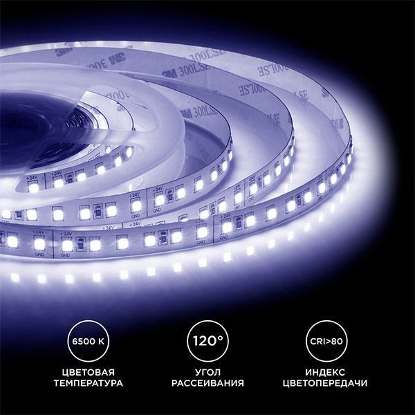 Светодиодная лента из линейки Стандарт с артикулом 00-343 работает от постоянного тока с напряжением 24В. Благодаря светодиодам smd 2835 излучающим световой поток равный 1500 Лм/м лента является отличным решением для изготовления светодиодных светильников в алюминиевом профиле. Благодаря высокой яркости с помощью таких светильников можно организовать основное освещение не только в жилых помещения, медицинских и образовательных учреждениях, но и торговых залах с большой высотой потолков. По сравнению с лампами накаливания светодиодная лента эквивалентна лампам мощностью 150 Вт. Данная модель светодиодной ленты обладает холодным белым цветом свечения с цветовой температурой 6500 К. При выборе светодиодной ленты важно учитывать такой параметр, как потребляемая мощность, чтобы правильно подобрать блок питания. У данной модели этот показатель равен 16 Вт на один метр. Степень защиты этого изделия соответствует стандарту IP20, что подразумевает использование только в сухих и проветриваемых помещениях. Отрезать светодиодную ленту можно в специально отмеченных местах, которые располагаются через каждые 120 мм. Компактные размеры светодиодной ленты с шириной 10 мм и основанием из гибкой, двухслойной, медной подложки дают огромное преимущество при создании любых дизайнерских фантазий. Для управления лентой используйте диммер для монохромной светодиодной ленты (приобретается дополнительно). С помощью него можно включать или выключать светодиодную ленту, отрегулировать ее яркость, а также использовать различные динамические режимы и настроить скорость их работы.