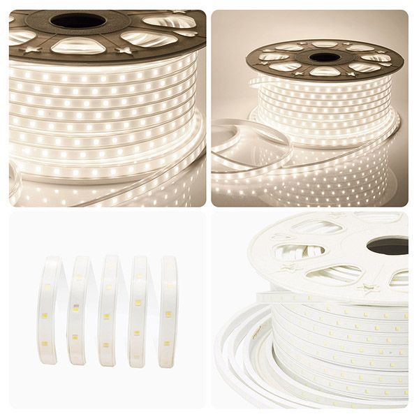 Светодиодная лента Белый теплый 2835 220V  6W/m  60Led/м герм 10-63 Стандарт IP65 50М