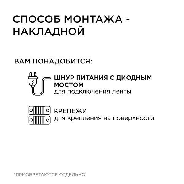 * Световой поток указан как эквивалент LED ленты с белым цветом свечения аналогичной мощности потребления.