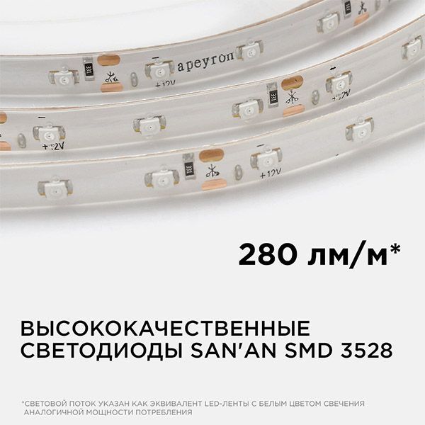 * Световой поток данной позиции указан как эквивалент светодиодной ленты с белым цветом свечения аналогичной мощности потребления.