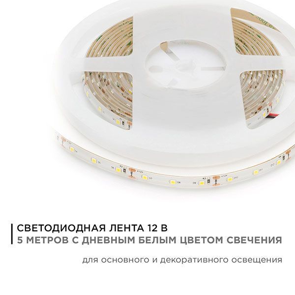 Светодиодная лента Белый дневной 3528 12V 4.8W/m 60Led/метр герм (силикон) 00-147 Стандарт IP65