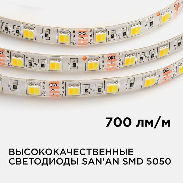 Светодиодная лента Белый-MIX 5050 12V 14.4W/m 60Led/метр герм (силикон) 00-117 Стандарт IP65