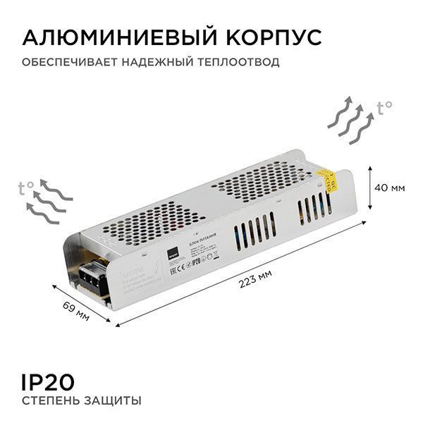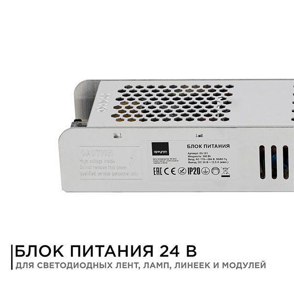 Блок питания 24В 03-101 из линейки Стандарт с номинальной мощностью 300Вт обладает на выходе постоянным током с напряжением 24В, что делает его идеальным источником питания для таких изделий, как светодиодная лента, светодиодные лампы, линейки и модули с рабочим напряжением 24В. Компактный, алюминиевый корпус с размерами 223х69х40мм позволит найти место для монтажа в любом интерьере, спрятать в местах с ограниченным пространством. Также он будет легок в подключении благодаря клеммам, снабженным маркировкой на корпусе. Кроме всего прочего этот блок питания, благодаря входному фильтру, будет работать при скачках напряжения в диапазоне 170-264В, в то время как выходной фильтр сглаживает пульсацию и защищает ваши глаза. Данный блок питания имеет степень защиты от пыли и влаги IP20, а это значит, что его рекомендуется устанавливать в сухих и проветриваемых помещениях.
