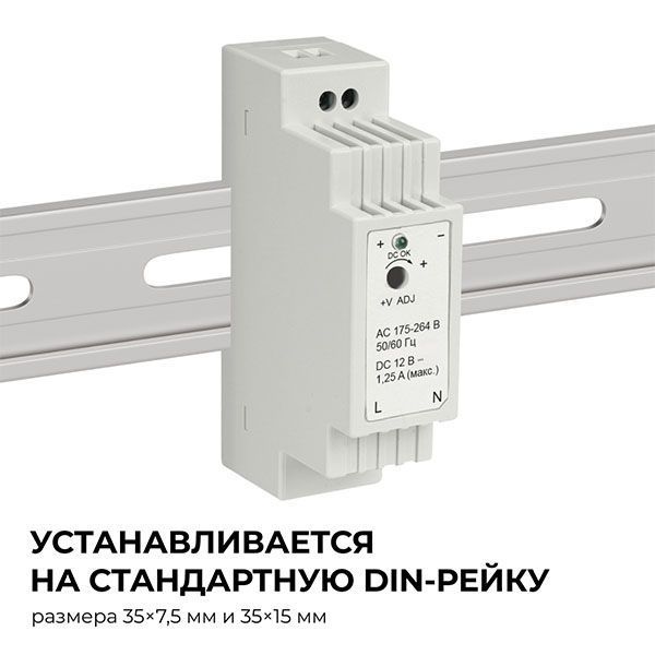 Блок питания (AC-DC) 12V 15W 03-160 Apeyron на din рейку