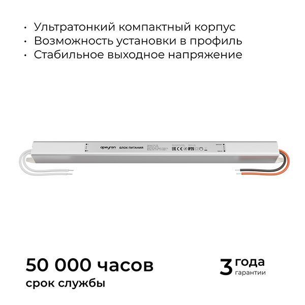 Компактный, ультратонкий алюминиевый корпус с размерами 282х18х18 мм позволяет устанавливать блок в ограниченном пространстве, а также встраивать в алюминиевый профиль для создания линейного светильника на базе светодиодной ленты.