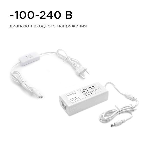 Блок питания (адаптер) 03-19 предназначен для преобразования переменного напряжения ~230 В / 50 Гц в постоянное стабилизированное 12 В. Подходит для подключения светодиодных лент, ламп, линеек и модулей с напряжением 12 В. Обеспечивает защиту от перегрузки, перегрева и короткого замыкания, поэтому безопасен в использовании. Корпус белого цвета выполнен из ABS+PC. Имеет эстетичный вид и не теряет своих свойств при нагреве. Размер 112х54х32мм. Адаптер комплектуется коннектором 2,5x5,5 мм, что делает подключение устройств быстрым и удобным. Длина кабеля 2300 мм. Степень защиты от пыли и влаги IP44 означает, что блок имеет защиту от всестороннего обрызгивания и его можно использовать во влажных зонах без прямого попадания на него струй воды (рекомендовано удаление от источника воды не менее 20 см). Адаптер представляет собой готовое решение: комплектуется кабелями, вилкой европейского стандарта, выключателем на проводе и коннектором для подключения устройств. Изделие имеет низкий уровень пульсации выходного напряжения.