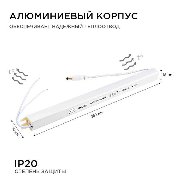 Блок питания 24В 03-97 из линейки Стандарт с номинальной мощностью 36Вт обладает на выходе постоянным током с напряжением 24В, что делает его идеальным источником питания для таких изделий, как светодиодная лента, светодиодные лампы, линейки и модули с рабочим напряжением 24В. Компактный, алюминиевый корпус с размерами 282х18х18мм позволит найти место для монтажа в любом интерьере, спрятать в местах с ограниченным пространством. Также он будет легок в подключении благодаря клеммам, снабженным маркировкой на корпусе. Кроме всего прочего этот блок питания, благодаря входному фильтру, будет работать при скачках напряжения в диапазоне 170-264В, в то время как выходной фильтр сглаживает пульсацию и защищает ваши глаза. Данный блок питания имеет степень защиты от пыли и влаги IP20, а это значит, что его рекомендуется устанавливать в сухих и проветриваемых помещениях.