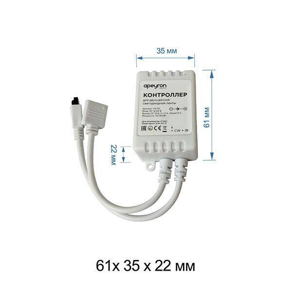 Контроллер CCT 04-30 предназначен для управления светодиодной лентой CCT 12/24 В. С помощью него можно регулировать цветовые оттенки, включать или выключать светодиодную ленту, выбирать различные динамические режимы свечения светодиодной ленты, регулировать яркость. Прибор позволит отрегулировать свечение: создать как свечение бодрящих холодных оттенков, способствующих утреннему пробуждению и концентрации, так и успокаивающих цветов свечения теплых оттенков, которые способствуют успокоению нервной системы и расслаблению. Прибор может работать как от напряжения 12 В, так и 24 В. Важно отметить, что в зависимости от того с каким напряжением предстоит работать устройству, будет отличаться и максимальная мощность нагрузки, которую можно подключить к нему. Так, при напряжении 12 В максимальная нагрузка будет равна 72 Вт, а при напряжении 24 В уже 144 Вт. Прибор укомплектован дистанционным пультом управления, передающий сигнал по инфракрасному каналу. Пластиковый накладной размер 50х28х13 мм. Степень защиты от пыли и влаги соответствует стандарту IP33, что подразумевает установку устройства в сухом, проветриваемом помещении. В комплекте: контроллер, кнопочный ИК-пульт, 4-игольчатый коннектор для выхода.