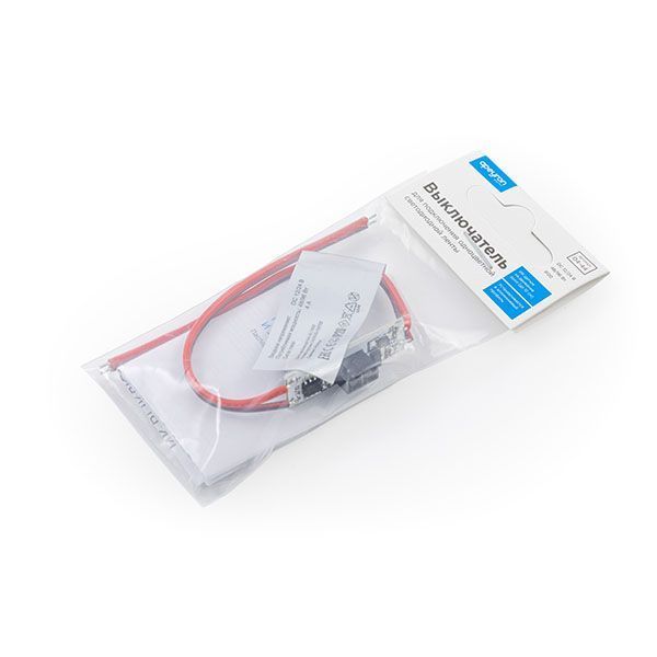 ИК-выключатель 04-44 предназначен для управления светодиодной монохромной лентой 12/24 В. Выключатель устанавливается в алюминиевый профиль, в корпусе которого необходимо сделать отверстие размером 7х5 мм для работы датчика. Зона срабатывания до 10 см. Одно из преимуществ данного изделия заключается в возможности работать как от напряжения 12 В, так и 24 В, а значит его можно использовать со светодиодными лентами с соответствующим напряжением. Важно отметить, что в зависимости от того с каким напряжением предстоит работать устройству, будет отличаться и максимальная мощность нагрузки, которую можно подключить к нему. Так, при напряжении 12 В максимальная нагрузка будет равна 48 Вт, а при напряжении 24 В уже 96 Вт. Это значит, что к данному изделию вы можете подключить в два раза больше светодиодной ленты 24 В. Встраиваемый выключатель имеет размеры 33х10х4,8 мм. Степень защиты от пыли и влаги соответствует стандарту IP20, что подразумевает установку устройства в сухом, проветриваемом помещении.