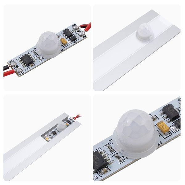 Выключатель с ИК датчиком движения на корпусе 04-46 предназначен для управления светодиодной монохромной лентой 12/24 В. Выключатель устанавливается в алюминиевый профиль, в экране которого необходимо сделать отверстие размером 7х5 мм для работы датчика. При улавливании движения происходит включение и выключение света. При пропадании движения свет отключается через 30 секунд. Зона срабатывания 3-5 м. Одно из преимуществ данного изделия заключается в возможности работать как от напряжения 12 В, так и 24 В, а значит его можно использовать со светодиодными лентами с соответствующим напряжением. Важно отметить, что в зависимости от того, с каким напряжением предстоит работать устройству, будет отличаться и максимальная мощность нагрузки, которую можно подключить к нему. Так, при напряжении 12 В максимальная нагрузка будет равна 36 Вт, а при напряжении 24 В уже 72 Вт. Это значит, что данному изделию вы можете к подключить в два раза больше светодиодной ленты 24 В. Встраиваемый выключатель имеет размеры 38х10х6,2 мм. Степень защиты от пыли и влаги соответствует стандарту IP20, что подразумевает установку устройства в сухом, проветриваемом помещении.