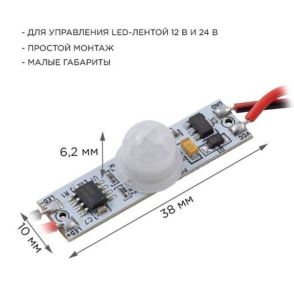 - Позволяет управлять монохромной светодиодной лентой бесконтактно;