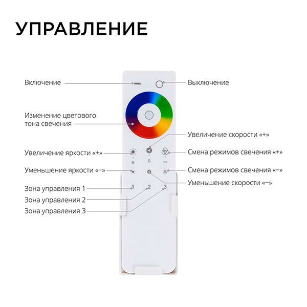- Создание до 3-х зон освещения с уникальным световым и цветовым сценарием;