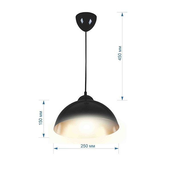 Подвесной декоративный светильник "Пэрсо" 14-47 используется как основной источник освещения для дома или любого пространства, где требуется подчеркнуть оригинальность интерьера. Благодаря минималистичному дизайну идеально подойдет для кухни, гостиной, спальни, а также отлично будет смотреться в фотостудии, офисе, кафе и ресторане. Металлический, черный с золотым размеры O250х150 мм. Длина черного шнура 450 мм, регулируется при монтаже в зависимости от высоты потолков. Тип крепления – подвесной, на крючок. В светильник можно установить лампу накаливания или люминесцентную лампу с патроном Е27 мощностью до 40 Вт (в комплект не входит). Для низкого энергопотребления мы рекомендуем использовать светодиодную лампочку. Изделие предназначено для работы в сети с номинальным напряжением 220В. Степень защиты от пыли и влаги IP20.