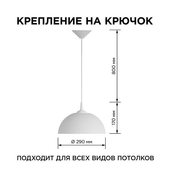 - Длина шнура регулируется при монтаже в зависимости от высоты потолков.