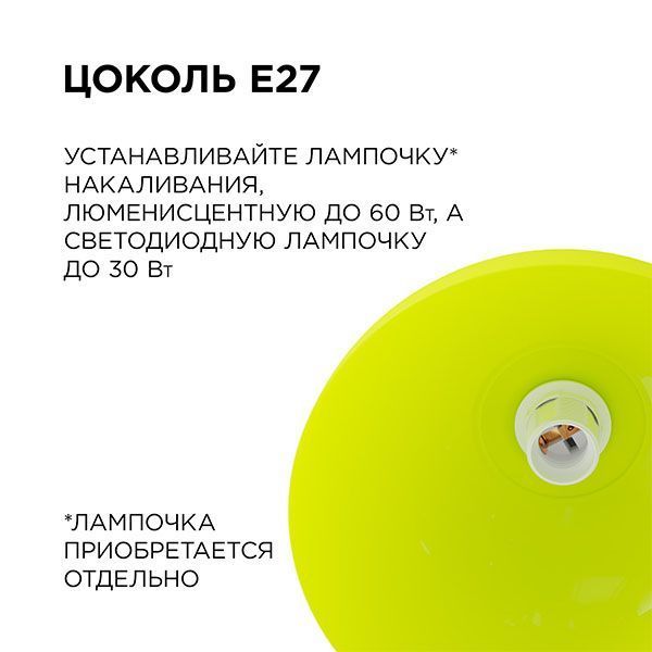 Подвесной декоративный светильник "Кэнди" НСБ 21-60-222 используется как основной источник освещения для дома или любого пространства, где требуется подчеркнуть оригинальность интерьера. Минималистичный дизайн светильника позволяет использовать его практически в любом помещении. Идеально подойдет для кухни, гостиной, детской комнаты, спальни, а также отлично будет смотреться в фотостудии и кафе. Желтый плафон из полипропилена имеет размеры O290х170 мм. Длина белого шнура 800 мм, регулируется при монтаже в зависимости от высоты потолков. Тип крепления – подвесной, под крючок. В светильник можно установить лампу накаливания или люминесцентную лампу с патроном Е27 мощностью до 60 Вт (в комплект не входит). Для низкого энергопотребления мы рекомендуем использовать светодиодную лампочку. Светильник предназначен для работы в сети с номинальным напряжением 230В. Степень защиты от пыли и влаги IP20.