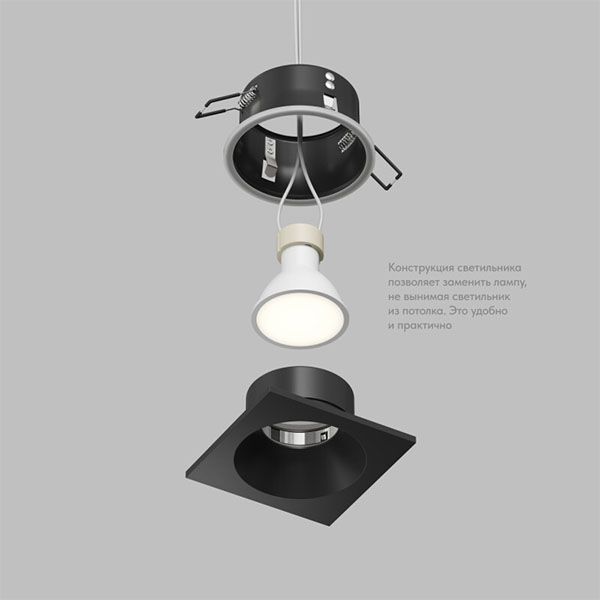 Встраиваемый светильник без лампы DENKIRS COVE DK2131-BK GU10 черный квадратный IP44