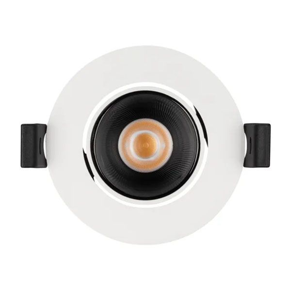 Встраиваемый поворотный светильник даунлайт. Мощность 8.4 Вт, св. поток 682 лм, 79 лм/Вт, теплый 3000 K, CRI>90, UGR<16, угол 32°, напряжение питания 230 В. Белый круглый корпус из алюминия, черный МАТОВЫЙ отражатель из PMMA, степень защиты IP20. Размер: диаметр 82 мм, высота 51 мм. Монтаж встраиваемый, установочное отверстие: диаметр 75 мм. Драйвер 21-42 В, 200 мА, пульсация <2%.