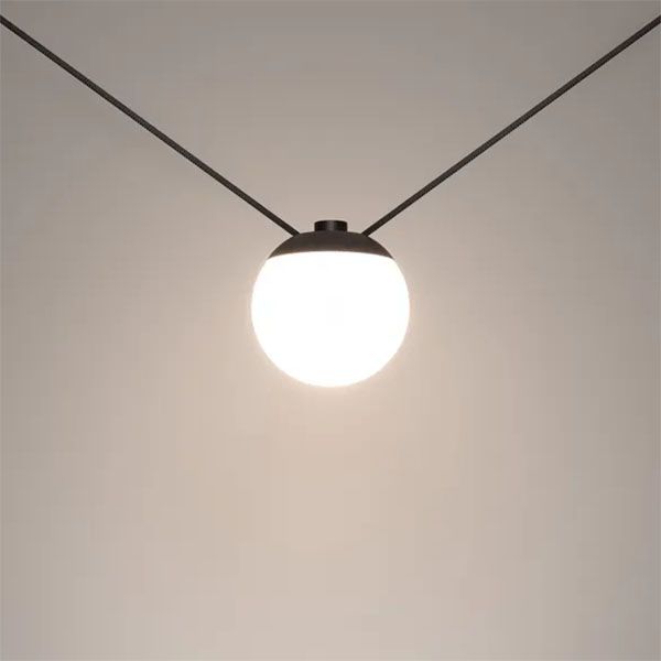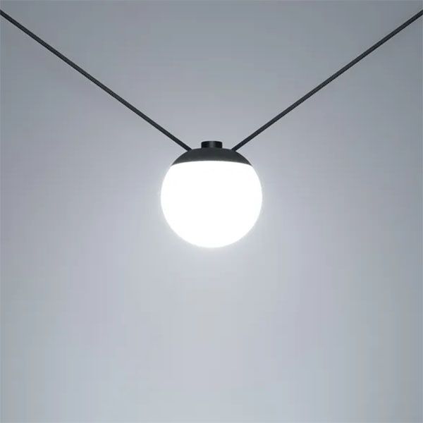 Светильник ART-INBELT-SFERO-R140. Мощность 7 Вт, св. поток 825 лм, 118 лм/Вт, изменяемая цветовая температура 2700-6500 К, CRI>92, угол 240°, напряжение питания 48 В. Степень защиты IP20. Размер: O140 x 131 мм. Монтаж на токопроводящий ремень INBELT. Цвет корпуса черный. DALI.