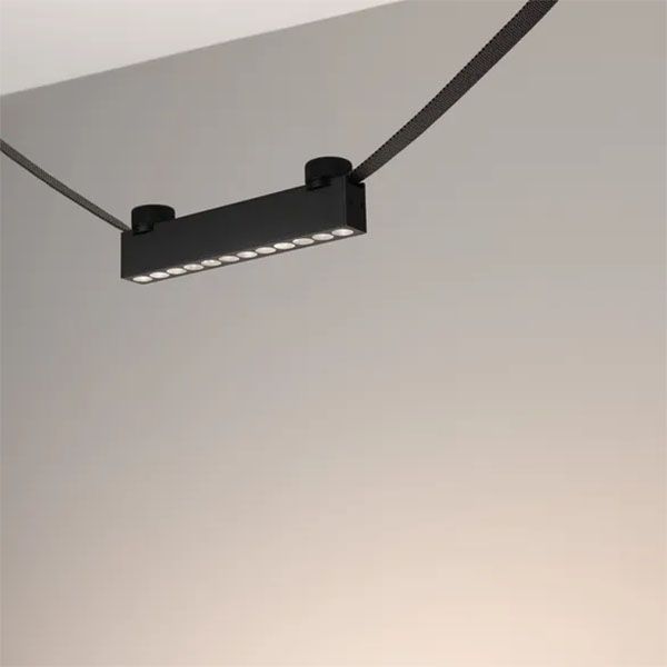 Светильник ART-INBELT-DOTS-L210. Мощность 8Вт, св. поток 436-459 лм, 55-58 лм/Вт, изменяемая цветовая температура 2700-6500 К, CRI>92, угол 33°, напряжение питания 48 В. Степень защиты IP20. Размер: 210 x 25 x 37 мм. Монтаж на токопроводящий ремень INBELT. Цвет корпуса черный. UGR<16. Протокол управления DALI