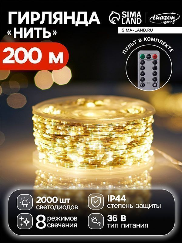 гирлянда РОСА Белый теплый 2000 Led IP44 220V 200м с пду