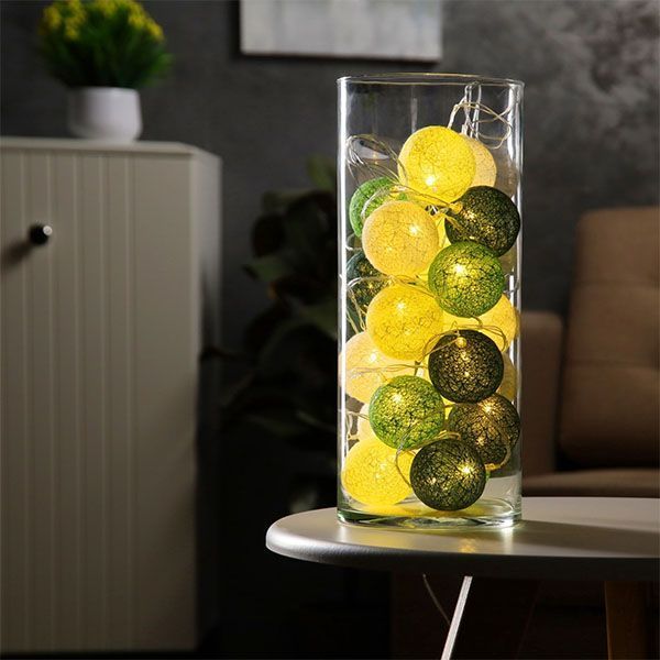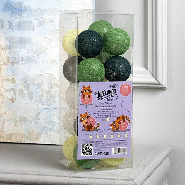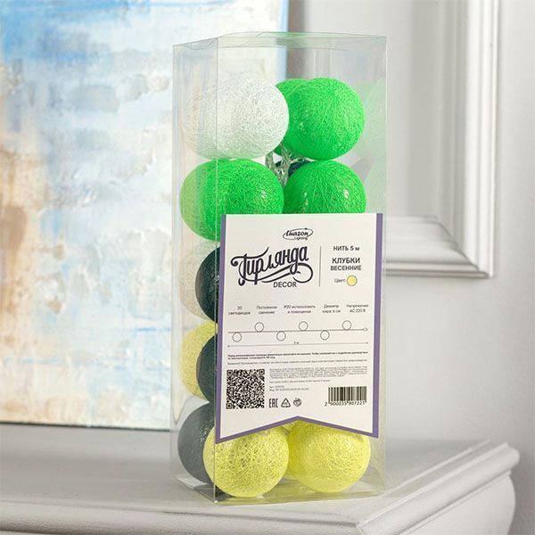 гирлянда НИТЬ Белый теплый с насадками «Клубки бело-зелёные» прозрачная нить, 20 LED, 5м IP20 220 В