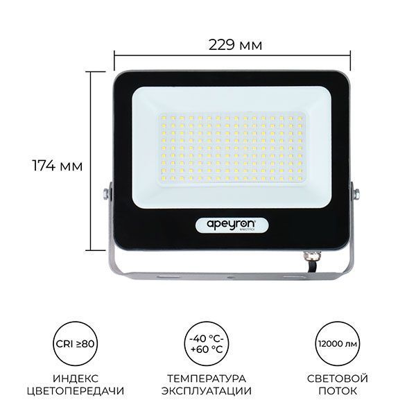 прожектор Белый 100W 05-48 6500K 220-240V IP65 серый Apeyron
