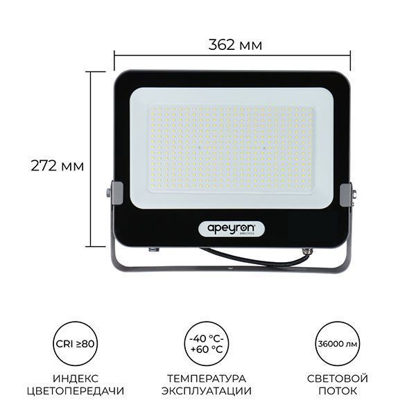 прожектор Белый 300W 05-51 6500K 220-240V IP65 серый Apeyron
