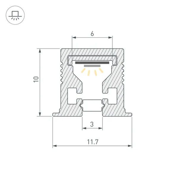 Комплект с экраном. Алюминиевый профиль для светодиодных лент и линеек. Цвет - шампань золотой. Габаритные размеры (L?W?H): 2000x11,7x10 мм. Ширина площадки для ленты 6 мм. В комплекте с матовым экраном и выдвижной пластиковой пластиной для более удобной установки светодиодной ленты. Цена за комплект. Заглушки и другие аксессуары приобретаются отдельно.